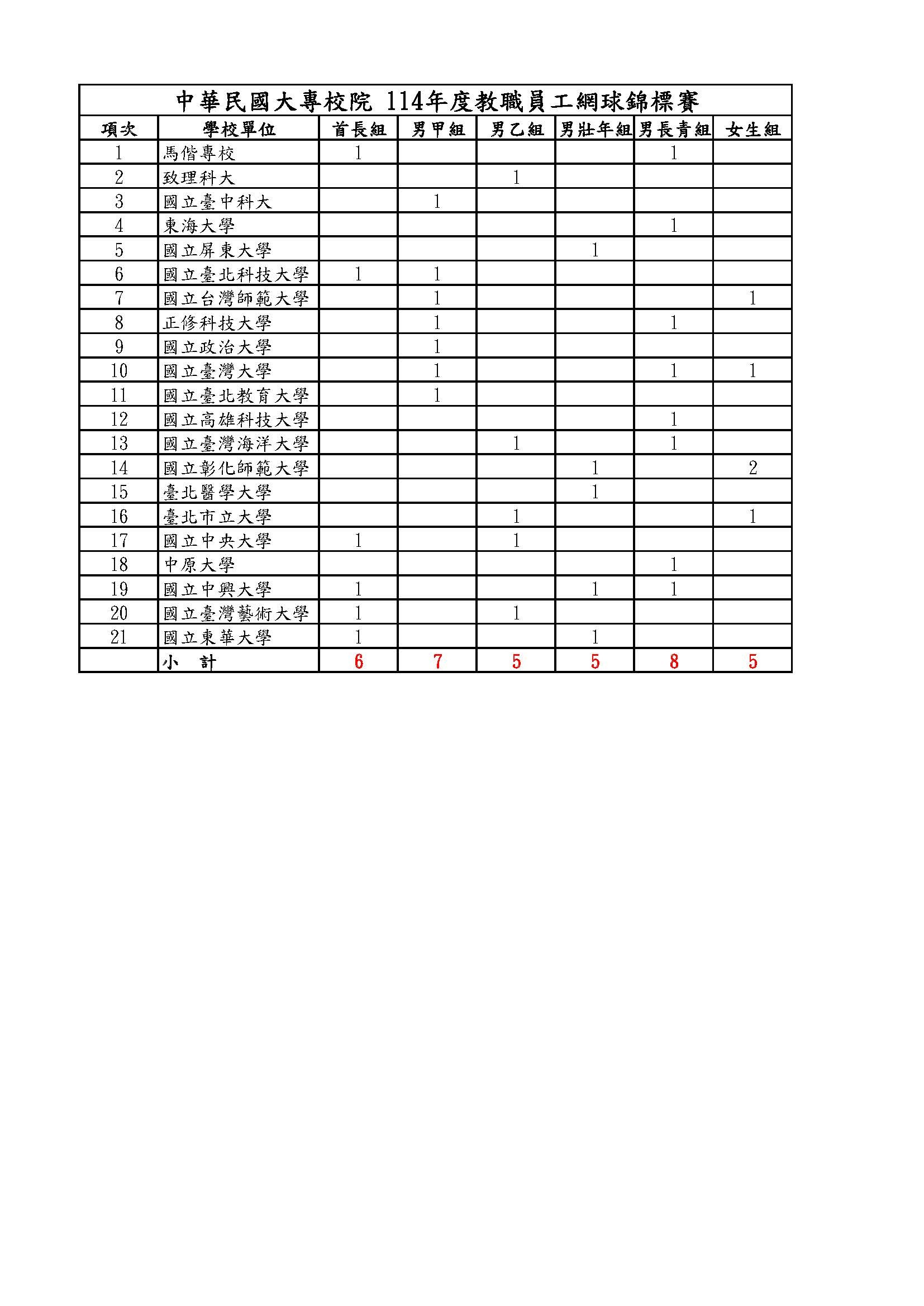 114年度教職員工網球錦標賽競賽規程暨報名表單